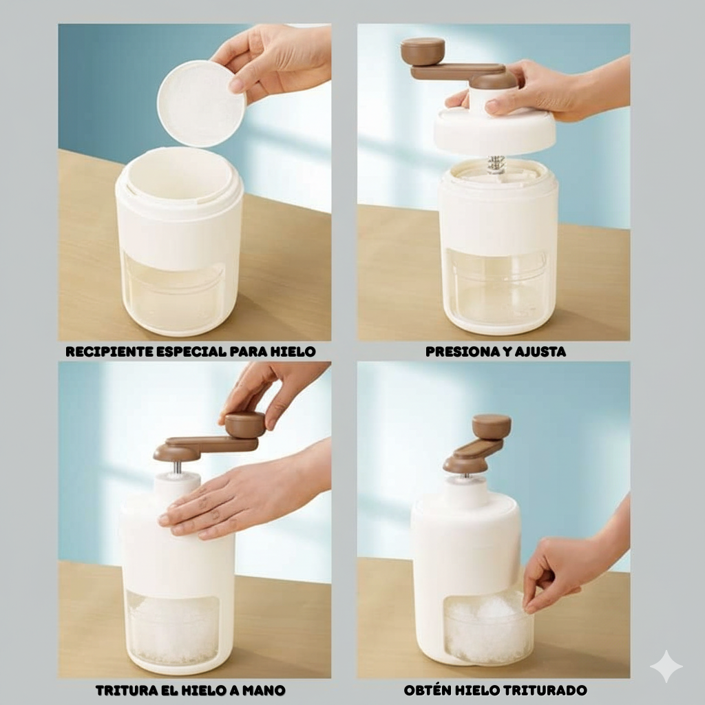 Disfruta granizados y cócteles al instante sin mucho esfuerzo, con tan solo unas vueltas el hielo se triturará.